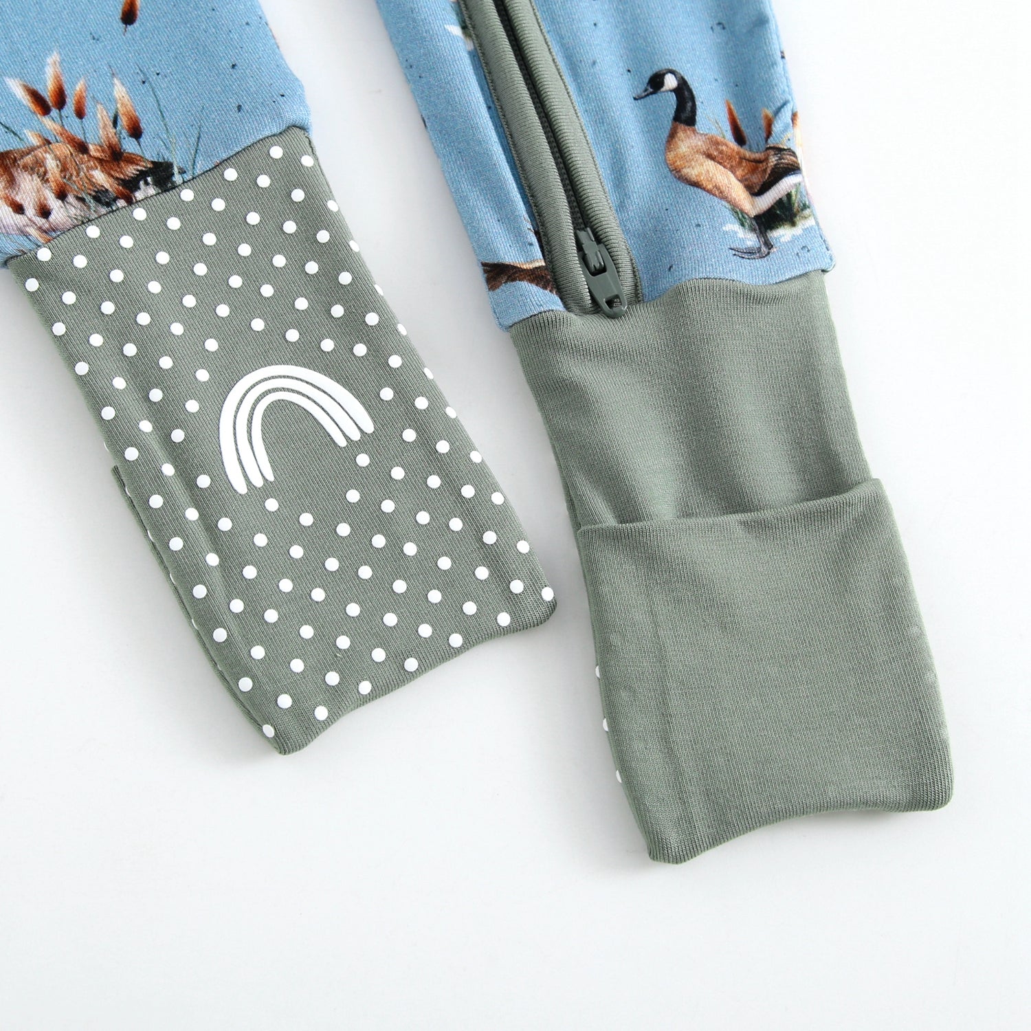 These footies feature fold-over feet on all sizes, so you can switch between footed and footless in a snap. Sizes 6–12 months and up include grippy soles to help with those first steps, and fold-over hand mitts are included on all sizes up to 12–18 months to protect tiny faces from scratches. A two-way YKK zipper makes diaper changes a breeze, day or night.