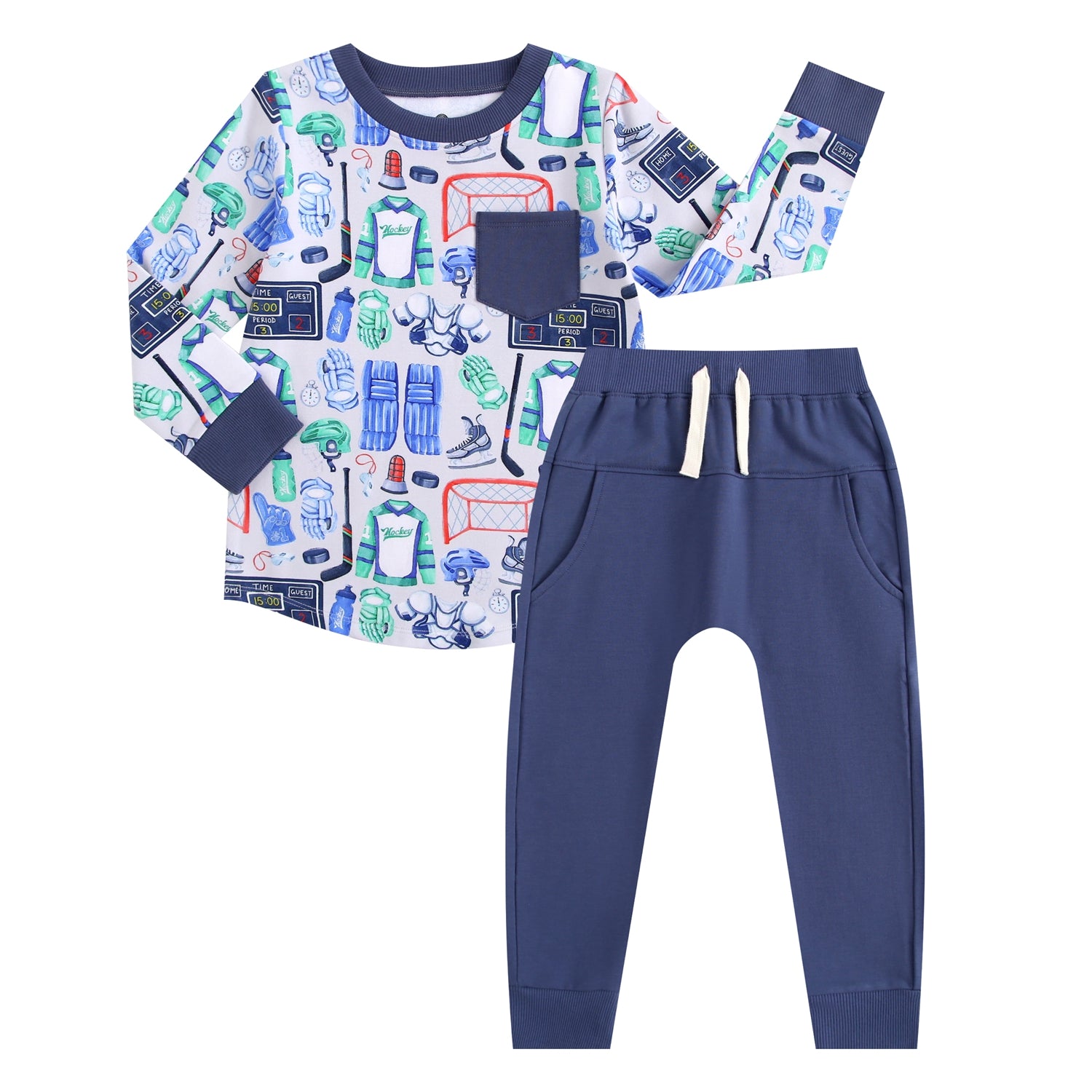 Our Bamboo Terry Adventure Sets are built for big imaginations and everyday play. This cozy two-piece set includes a long sleeve pocket tee with a stylish curved hem and a pair of harem-style jogger pants designed for all-day comfort.